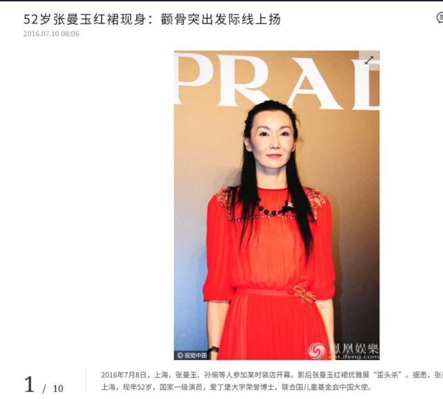 凤凰网:52岁张曼玉红裙现身:颧骨突出发际线上扬.