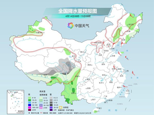 除了风沙和降温,昨天冷空气还导致内蒙古、东北地区等地出现强降雪,南方部分地区出现强对流天气。其中,浙江中南部、福建、江西南部、广东中东部、广西北部和西南部、云南东南部、海南岛南部、台湾岛等地出现中到大雨,局地暴雨,海南三亚、台湾南投局地大暴雨;福建中西部、江西南部、湖南东部、广西中部、广东中东部等地局地出现8至10级雷暴大风。内蒙古中东部、黑龙江西部等地出现小到中雪或雨夹雪或雨,内蒙古兴安盟、呼伦贝尔局地大雪。吉林南部、辽宁北部和东部出现雨转雨夹雪或雪。